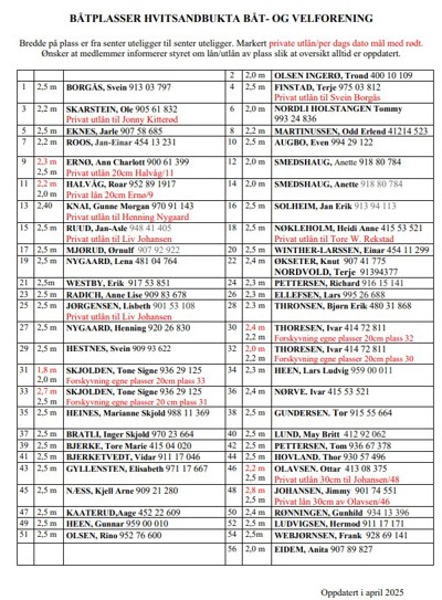 BÅTPLASSER HVITSANDBUKTA BÅT- OG VELFORENING, pr 24.04.2025